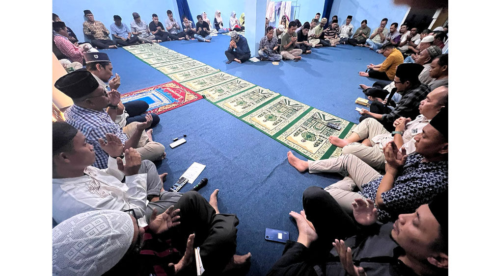 SUMATERAEKSPRES.ID - Suasana yasinan bersama Dirut SEG dan karyawan di musala gedung Graha Pena Sumatera Ekspres, usai salat Magrib, kemarin. Selain mendoakan para pimpinan dan karyawan yang telah berpulang, juga memanjatkan doa agar kinerja perusahaan yang tergabung dalam SEG bisa lebih baik tahun ini.