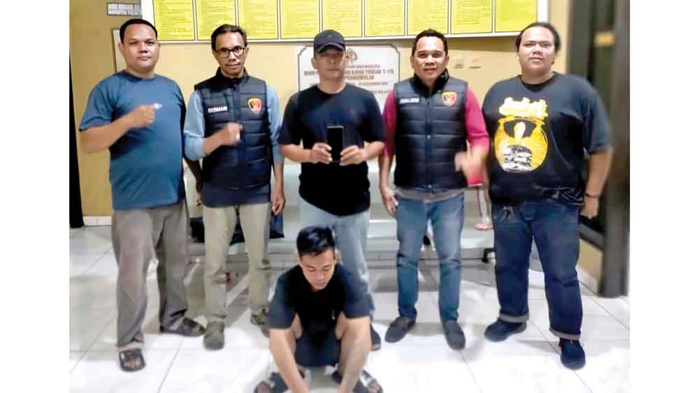 Tersangka Arwanda Sutra Ramdhan (24) saat diamankan anggota Polrek Rambang Kapak Tengah.-foto: ist-