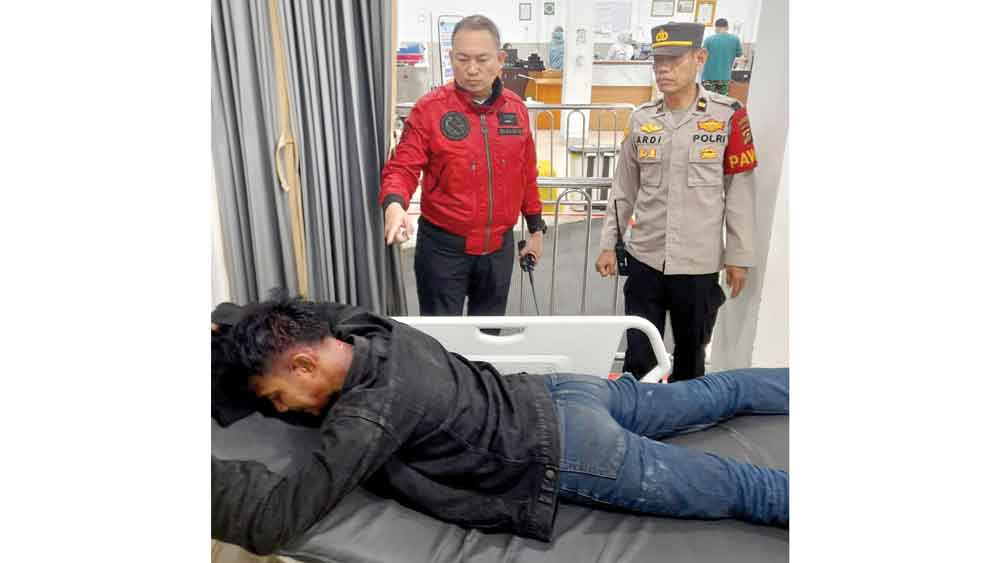 RAWAT : Kapolsek IB II Kompol Fauzi Saleh saat mengantarkan korban untuk mendapat perawatan di RS AK Gani Palembang. -Foto : Ist-