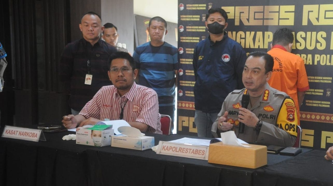 Kapolrestabes Palembang, Kombes Pol Harryo Sugihhartono, didampingi Kasat Narkoba Polrestabes Palembang, Kompol Faisal Manalu, mengatakan pihaknya telah menangkap tersangka pengedar sabu, yakni Syatria Bakti Prakasih (37), pada Senin (3/3).