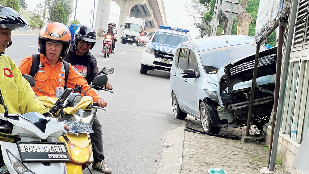 SUMATERAEKSPRES.ID - Sebuah mobil minibus Suzuki Ertiga dengan nomor polisi BG 1321 RI menghantam Tangga Stasiun LRT seberang Korem 044 Garuda Dempo, Jl Jenderal Sudirman, KM 5, Palembang, Minggu (7/9) subuh. Belum diketahui penyebab pasti kecelakaan tersebut, namun tak pelak langsung jadi perhatian warga dan pengendara yang melintas.