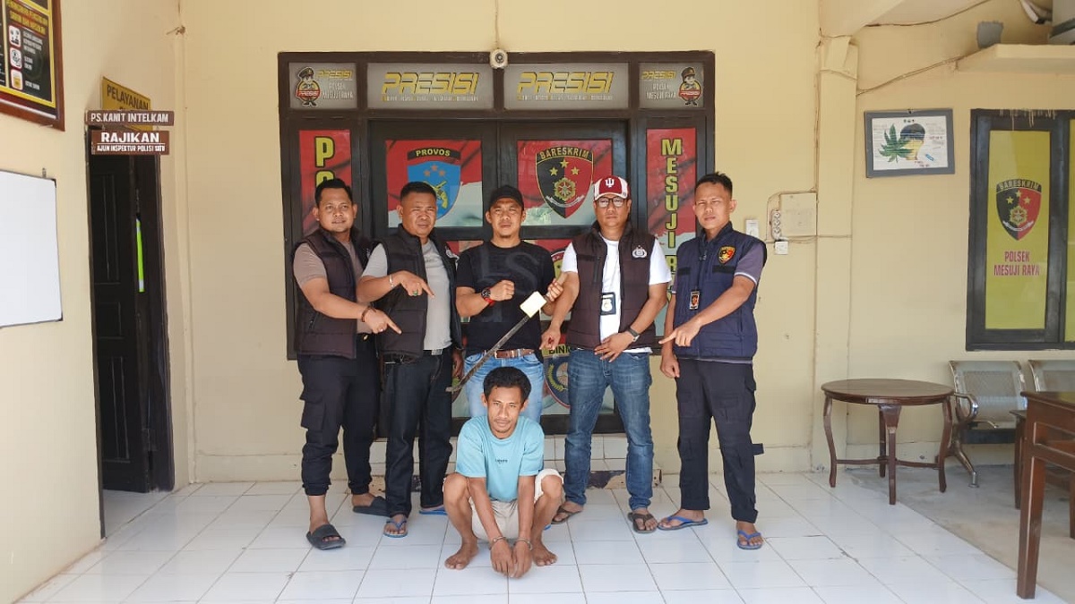 Kapolsek Mesuji Raya, Iptu Bambang, melalui Kanit Reskrim Ipda Joko Surono menjelaskan, tersangka berhasil diamankan bersama barang bukti sebilah parang bergagang kayu berwarna cokelat sepanjang 80 centimeter.