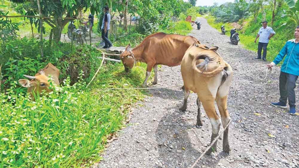 PEMBANGUNAN DESA: Berbagai program dan pembangunan di Desa Bangun Sari, Kecamatan Babat Toman, Muba. Mulai bangun jalan desa, penggemukan sapi, bagi BLT, pelayanan kesehatan hingga pengentasan stunting dengan pemberian makanan bergizi.-FOTO: IST