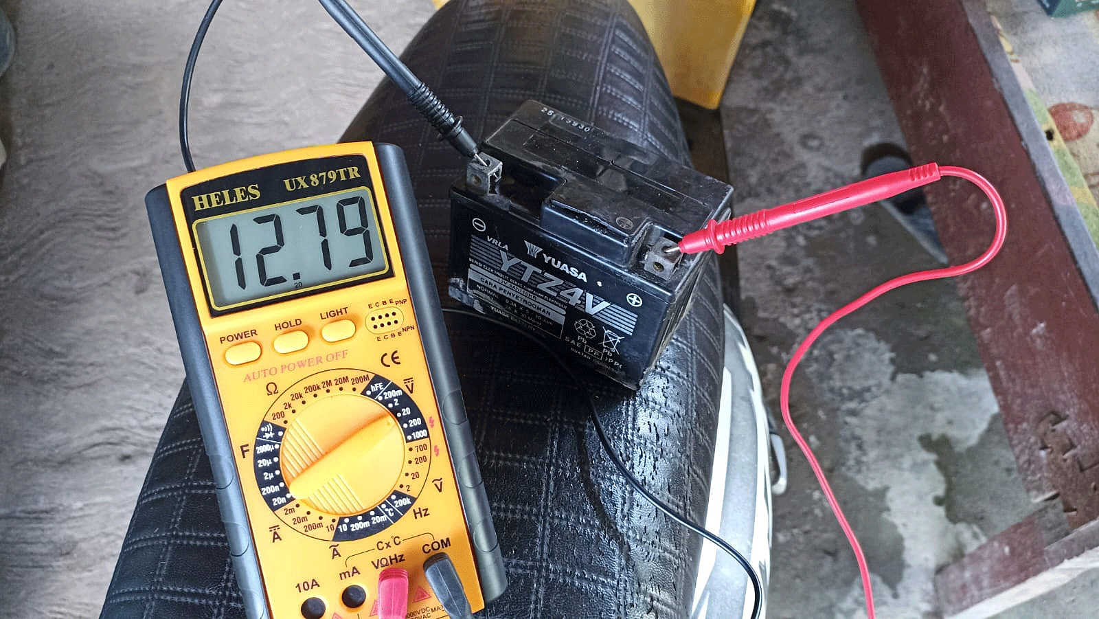 Ukur tegangan di terminal aki saat motor hidup. Idealnya di angka 13,5 – 14,5 volt. Kalau kurang dari itu, artinya ada masalah di sistem charging.gbr.sumateraekspres--