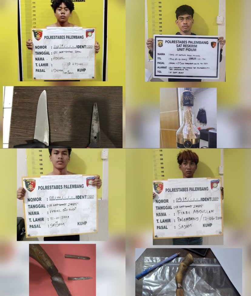 Mereka ditangkap oleh petugas gabungan Satreskrim Polrestabes Palembang bersama Subdit 3 Jatanras Ditreskrimum Polda Sumsel sekitar pukul 12.30–14.00 WIB.