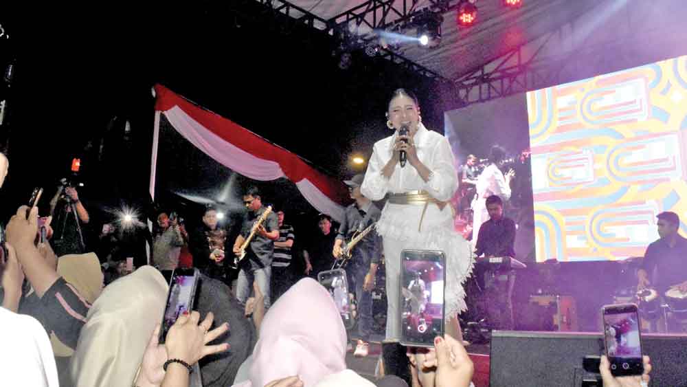 MEMUKAU: Pedangdut Erie Suzan tampil memukau pada pembukaan Festival Randik XXI. Ini menjadi pesta rakyat yang ikut mendongkrak perekonomian dan UMKM.-foto: ist-